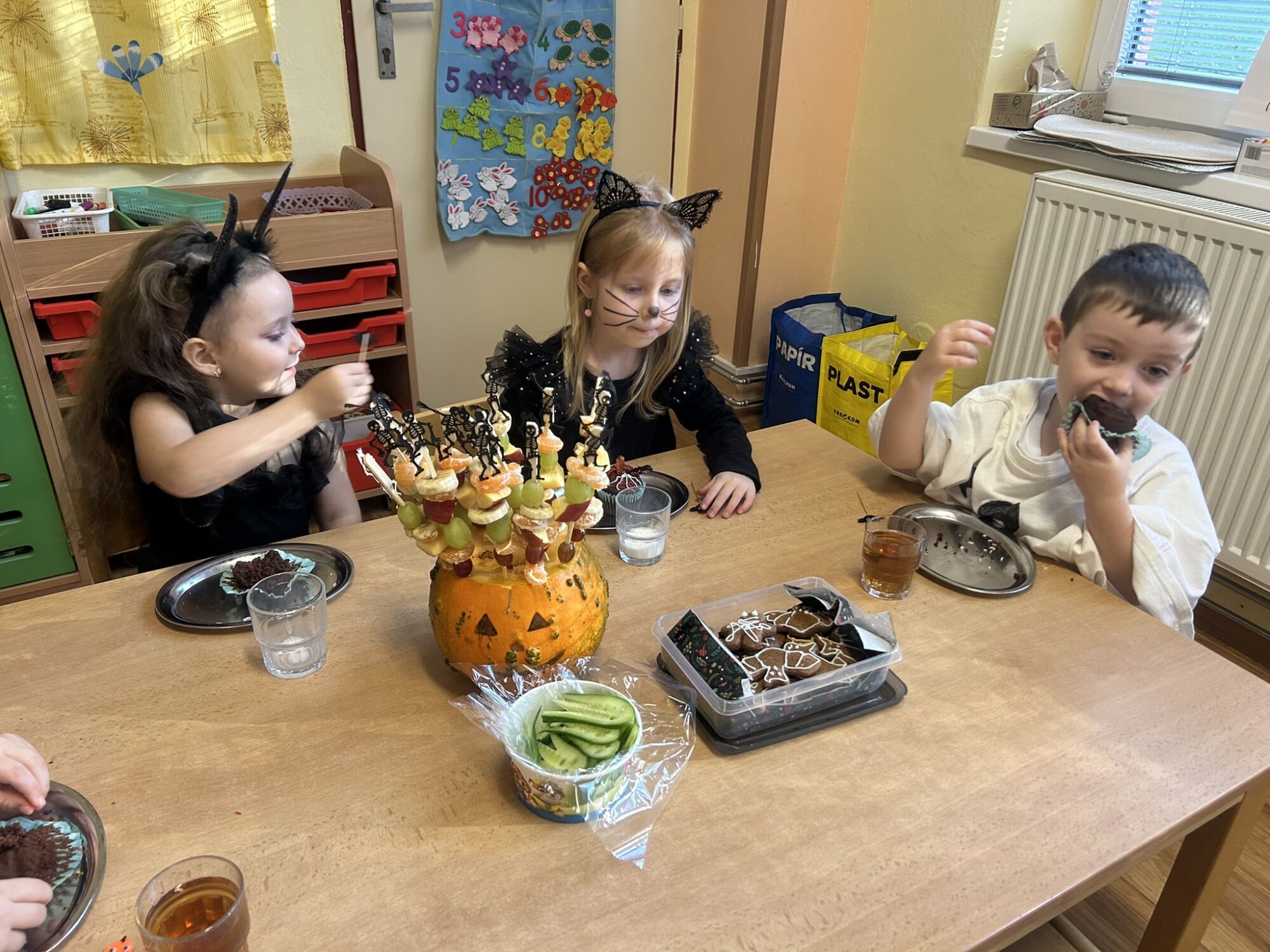 Zdobení malých hnětýnek. V pátek 22.10. si děti ze třídy Koťátek nazdobily každý malou hnětýnku.