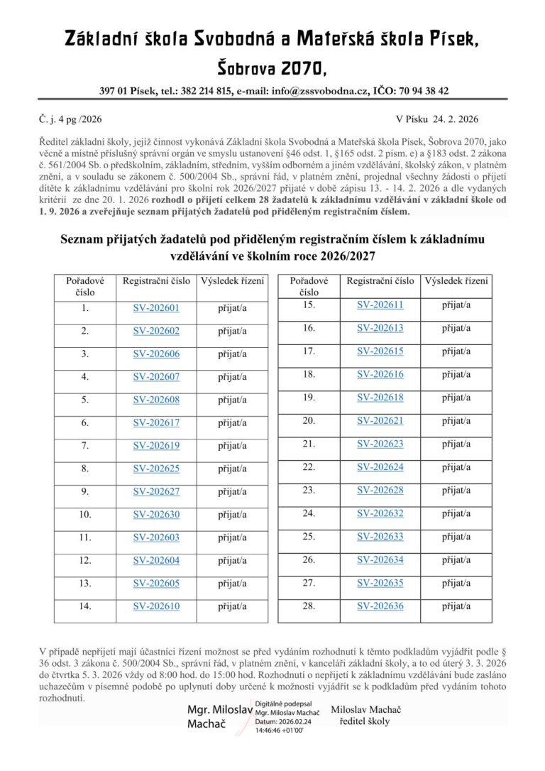 Základní škola Svobodná a Mateřská škola Písek, Šobrova 2070
